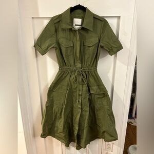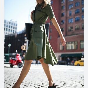 Our favorite details are combined into an easy dress. The ease of a shirt dress with long sleeves, a belted waist, and a mock turtleneck make this midi dress comfortable and effortless.
