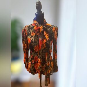 Tracy Reese NY Silk Blouse Top Tie Neck Long Sleeve Sheer Floral Size XS