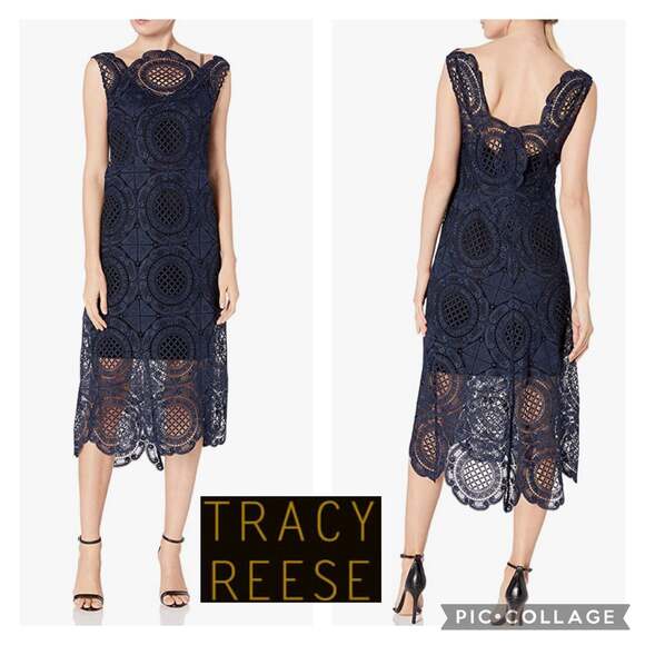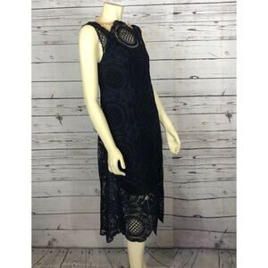 Tracy Reese Navy Surplice sleevless scalloped Lace Embroidered Dress size 4