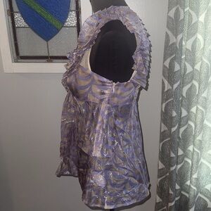 Tracy Reese New York Silk Metallic Ruffle Sleeveless Top