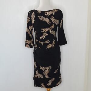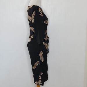 Tracy Reese Side Zip Feather Print Dress Asymmetrical Hem Black Silk 2