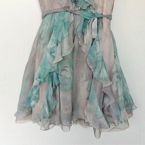 Tracy Reese Silk Ruffle Dress Flounced Frock Dreamy Aqua Floral Size 12