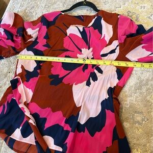 Tracy Reese 100% Silk Wrap Top. Gorgeous large abstract floral print Lin vivid colors. True wrap style. Balloon 1/2 sleeves. Size Medium. Very good condition.