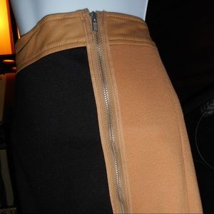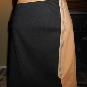 Tracy Reese Two-Tone Color Block Black and Tan A-Line Skirt with Front Side Zip