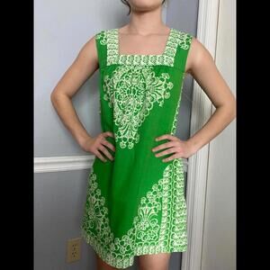 Step into a new season with this stunning A-Line dress that combines comfort and style. The bright green fabric is beautifully adorned with intricate white lace patterns, creating a fresh and lively aesthetic that is perfect for any occasion. With a square neckline and relaxed fit, this dress is as flattering as it is functional. Features include: