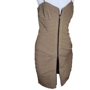 Tracy Reese Zip Front Corset Bandage Dress Olive Green Sleeveless Women's 10