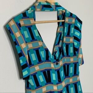 Tracy Reese top blue Silk geometric low back XS