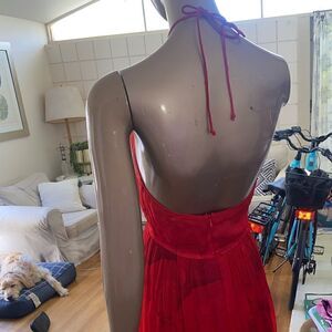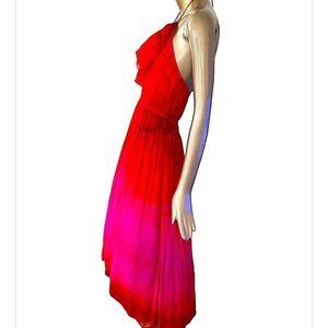 Tracy Reese red & pink halter dress with crinoline under skirt. Size 2