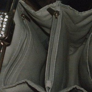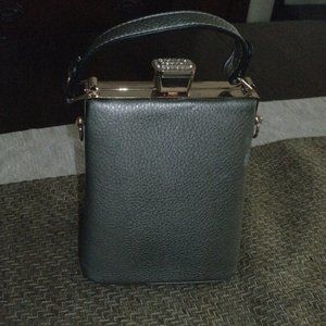 Tracy Zhou Gray Faux Leather Gold Framed Purse with Rhinestone Clasp 7.5" x 5.5"