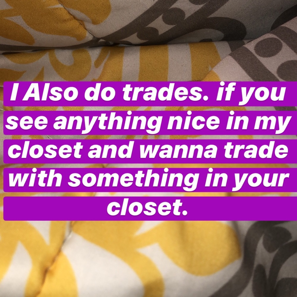 If you see something nice that I’m selling. You can comment trade and I will go to your closet and see if I’m interested. & we can trade. It all depends on how nice and expensive it was.