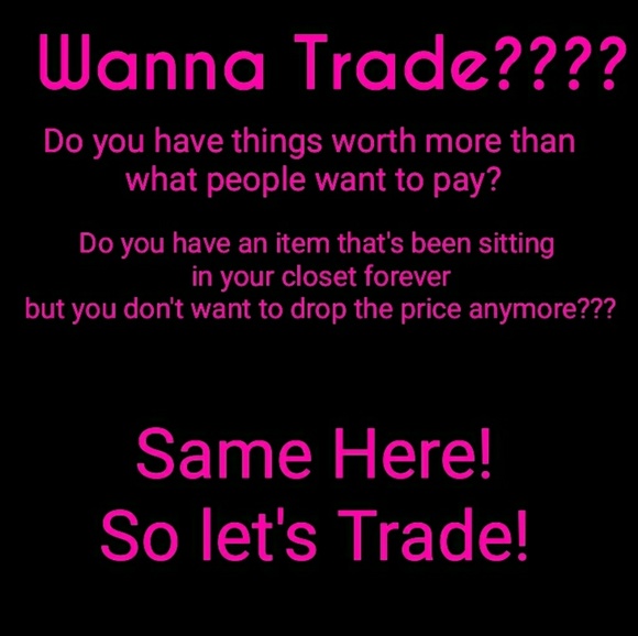 Do you see an item you like but don't have the funds to buy MORE stuff? Have I liked one of your items back? Do you have something that's been sitting in your closet forever and you're already asking a lower than it's worth price, AND you just can't get yourself to go ANY lower? Why only make a couple of bucks when you can trade and get something new???? Let's trade!