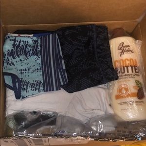 Shorts, 2 sports bras, cocoa, leggings, tee