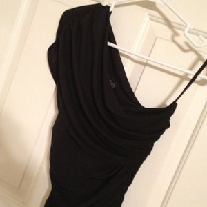 Body central one shoulder black dress scrunch sides , tried on , my butt isn't big enough for this to look cute lol . PERFECT CONDITION , size small but stretches & fits tight