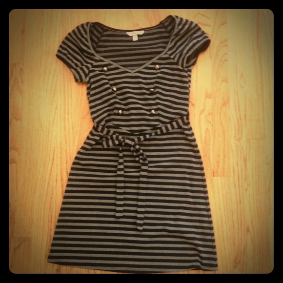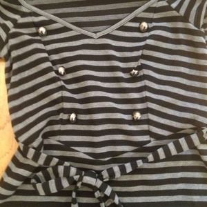 Never worn black and grey stripe dress. Same material tie around the waist and silver faux buttons on chest. Super cute!!