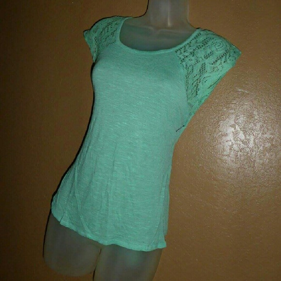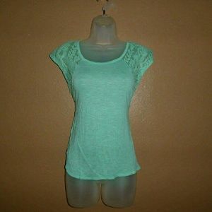 This is a mint colored tee from Rue 21, with crochet sleeves. Brand new with tags.