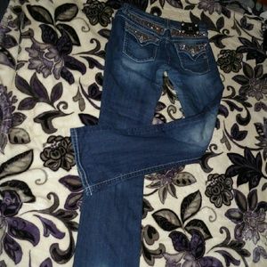 These are very cute size 31 Miss Me bootcut jeans from Buckle with a 32 inch inseam and gold sequins on the back. Very cute pockets, worn a handful of times , minimal wear