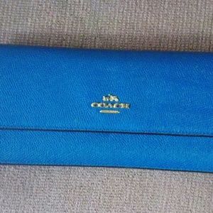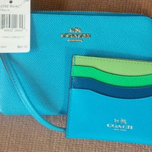 Coach mineral blue prairie satchel and matching wallet with azure blue wristlet,card holder and saleboat fob!! All is euc, bag has a few spots on the inside ( in a pic 5)fob is nwt The wallet is a perfect color match but it has a light gold hardware and the rest is silver. Non smoking home!