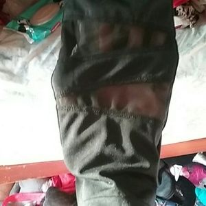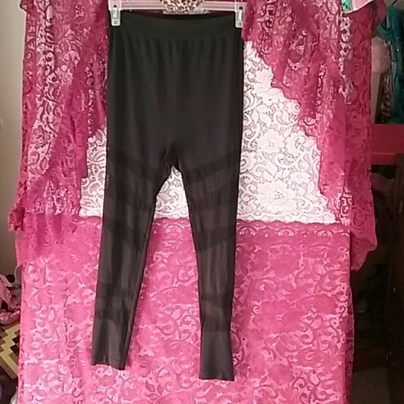 These high waisted leggings have mesh pieces down the front of the legs and are great for the gym. You can also dress them up with heels and a nice blouse to go out. Great transition piece for anyone's closet, add it today !! They have the tag taken out because it drove me nuts. Measurements laying flat are as follows:
