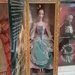 Mint in box lot of 7 Barbies 20 years old! #1Hallmark Happy Holidays Barbie, #2 Singing Barbie with Stacie n Kelly, #3 Tale of Peter Rabbit Barbie, #4 Oreo Fun Barbie, #5 Enchanted Evening Barbie, #6 Hallmark Fair Valentine Barbie, #7 is Galoob doll not Mattel Anastasia skating Princess. These dolls are 1990s dolls so the boxes are a bit worn. However these dolls don't have to be box kept. Its a great buy for someone's lil girl. 🌲🌲Any questions just ask! 25$Each, I can make a separate listing