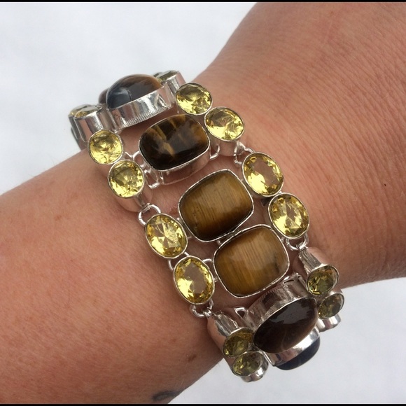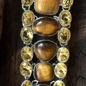Gorgeous statement piece!! 30 Citrine stones...13 tigers eye stones...925 sterling silver. Adjustable