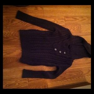 Size M Style&CO sweater! Falls to about the top o the jeans line! Super cute, I can model if requested