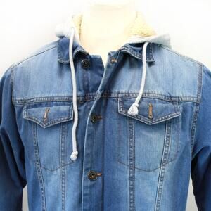 Trademark Brooklyn Denim Men's Jacket Hoodie Sherpa Lined Pocket Buttons Large