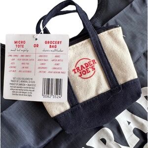 Adorable and functional Trader Joe’s Canvas Micro Tote that comes with a full-size foldable grocery bag stored neatly inside — brand new with tags.