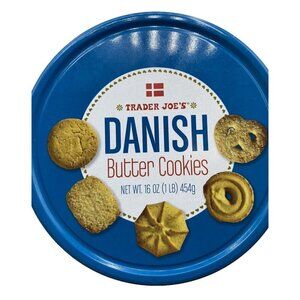Trader Joe's Cookie Tin Empty Danish Butter Cookies Blue White Danish Christmas