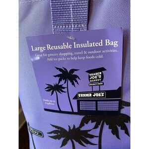 A fabulous Lavender color! New with tags Trader Joe's Large Reusable Insulated Grocery Cooler Bag. 13x 18 x 6 1/2 " with interior pocket. Great for shopping, beach, picnics! Ships quick (generally same day).