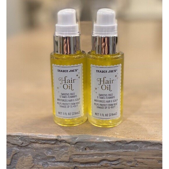 Trader Joe's Hair Oil 1 oz each Set of 2 Smooths Frizz. Tames Flyaways. Moisturizes Hair & Scalp. Helps Protect from heat damage. You will definitely want at least 2 of these! Ships quick!