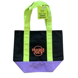 Trader Joe's Halloween Canvas Mini Tote Bag Multi-color BLACK PURPLE GREEN. Condition is New. Shipped with USPS Ground Advantage.