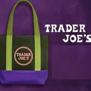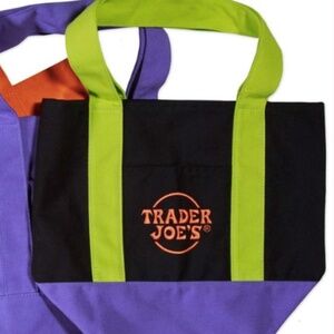 NEW w/tags - Trader Joe's Halloween Limited Edition Canvas Mini Tote. Black Background with purple bottom and green straps. Perfect for adults or kids. In hand - ready to ship!