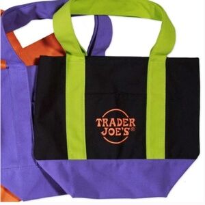 NEW w/tags - Trader Joe's Halloween Limited Edition Canvas Mini Tote. Black background with purple bottom and green straps. Perfect for adults or kids. In hand - ready to ship!