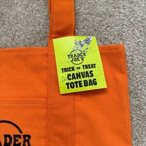 Trader Joes Halloween Mini Canvas Tote Bag Trick or Treat Orange Black NWT