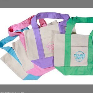 Brand new Trader Joe’s Mini Canvas Tote Bag Collectible set — includes all 4 pastel colors.