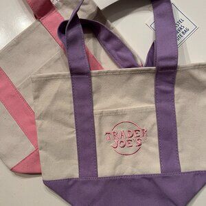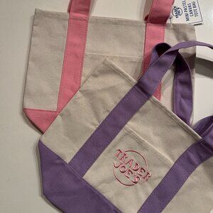 Trader Joe’s Mini Canvas Tote Bag Duo (Pink & Purple) – Brand New