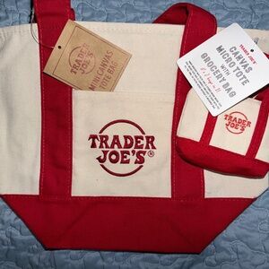 Trader Joe's Mini Canvas Totes Set of 2 Red