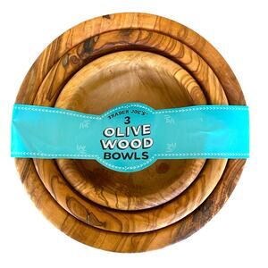 Trader Joe’s Solid Olive Wood Bowls Set of 3 Small to Medium Stacking Bowls