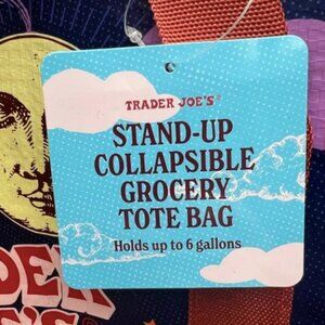 The newest addition to TJ's reusable bag lineup, Trader Joe’s Stand- Up Collapsible Grocery Tote Bag, ups that support even more, with a sturdy structure that will both Stand Up on its own, preventing spillage in a moving car, bus, or bicycle basket, and is fully Collapsible for ease of storage when not in use. Amazing!