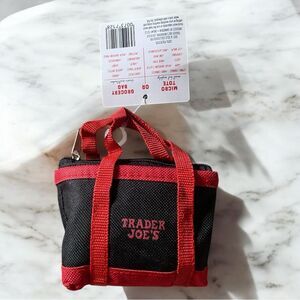 Compact grocery bag from Trader Joe's. Features a black base with red accents. Perfect for shopping trips. NWT.