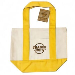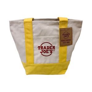 • Brand New Trader Joe’s Mini Canvas Tote Bag - Yellow & Cream, perfect for eco-conscious shoppers and style enthusiasts.