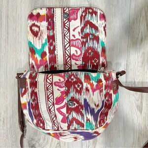 Trades Of Hope Leather Canvas Small Crossbody Purse Adjustable Strap Brown Boho