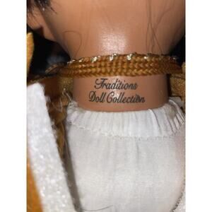 The "Tradition Collections 20" inch Indian Doll Sitting with bongo" is a porcelain fashion doll with black hair and brown eyes. This doll, measuring 20 inches in size, comes as a single piece and is part of the Traditions Collections brand. Perfect for collectors or as a unique addition to any doll collection, this doll showcases traditional elements with a modern twist, making it a standout piece for display or play.