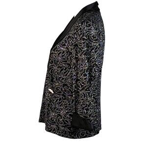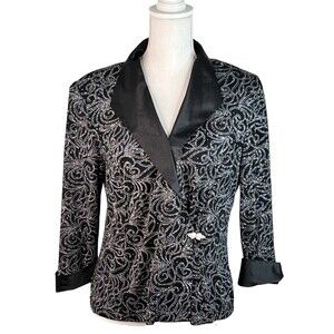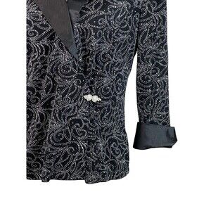 Vintage Tradition Women's Top Black Silver Bling Satin Detailing Jacket Size 12