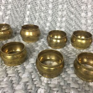 A great set of napkin rings made from brass; these rings have a basic traditional shape with a solid middle with two bands at the edges. Would be perfect for a variety of themed dinner parties-- especially a jungalow / bohemian theme or a traditional blue and white set up!