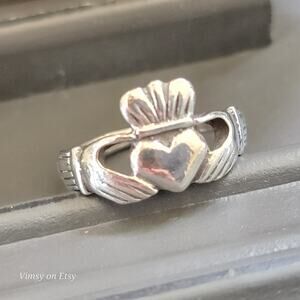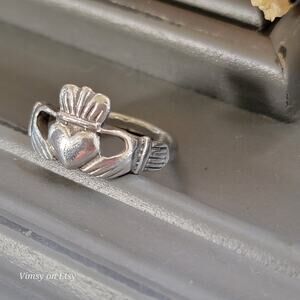 Traditional Claddagh Sterling Silver Ring, Symbolic Irish Vintage Jewelry