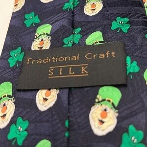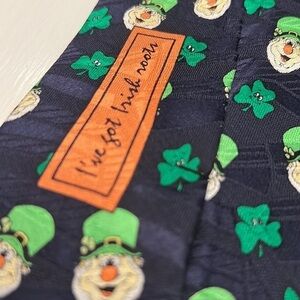 Here is a Traditional Craft 100% Silk I’ve Hot Irish Roots leprechaun 3 leaf Clover Tie 4” wide 60” long in fine condition