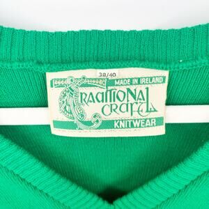 Traditional Craft Men Preppy V-Neck Clover Ireland Sweater in Kelly Green. Size 38/40 Medium.
