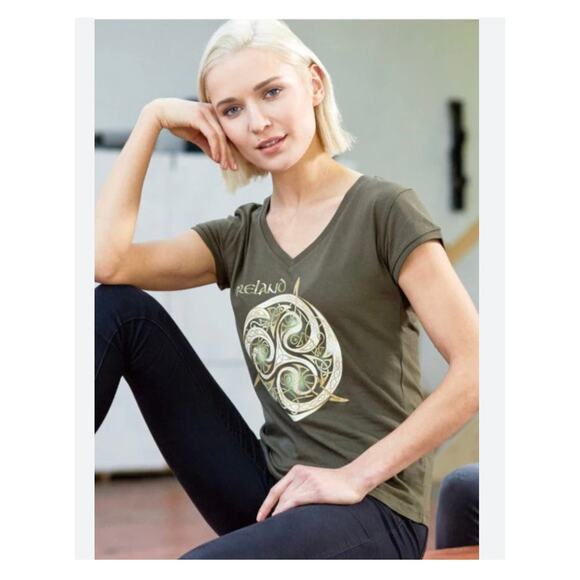 Traditional Craft Wear Khaki V-Neck T-Shirt Sz L