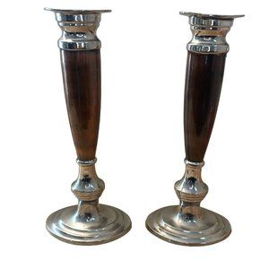 Traditional Elegant Silver Painted Candle Holders Heavy Made in India Set of 2